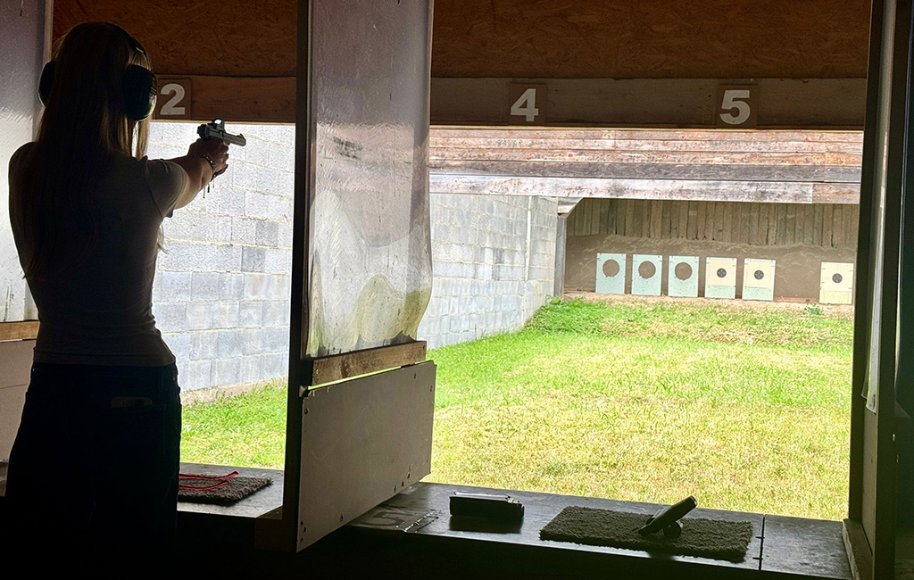 Open Air Schießanlage mit 10 Bahnen, überdachtem Schützenbereich und beleuchteter Trefferzone. Dabei können die Bahnen für Kurzwaffen oder durch modulare Umrüstmöglichkeit für Langwaffen mit Pistolenmunition genutzt werden. Inkl. Modul „Duell“ (drehende Scheiben).